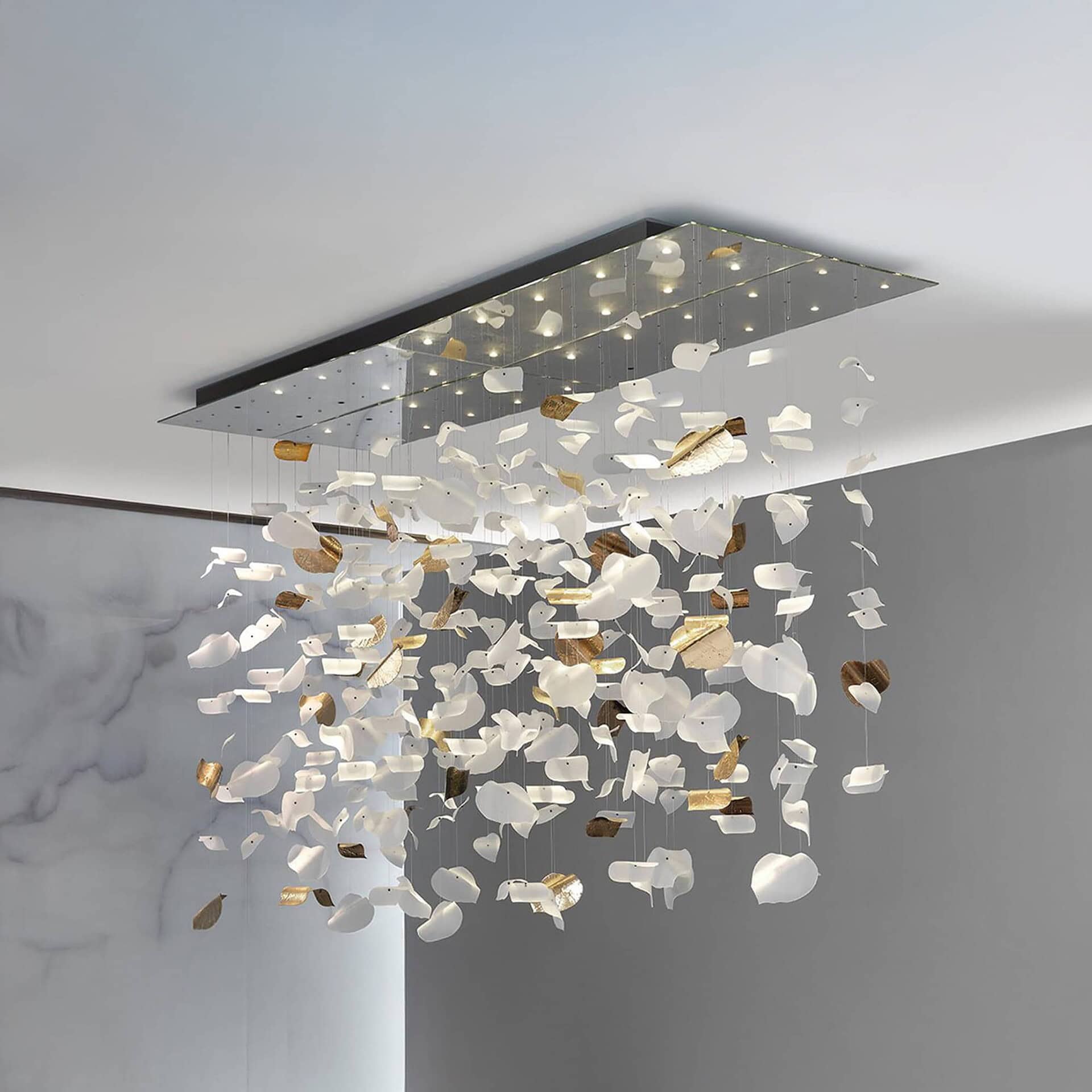 Available in multiple configurations, the Sirius adapts effortlessly to spaces large and small. Whether chosen as a single glowing disk or as a breathtaking installation with over one hundred disks, its radiant LED-integrated lighting ensures an atmospheric glow. With customizable glass finishes and structural options, this chandelier offers both artistry and versatility, making it a bold statement piece in luxury interiors.