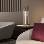This minimal design maximizes lighting while reflecting its glow. The thick glass cylinder encloses a center tube in a brass or bronze finish that conceals the cord. Topped with a linen shade, the Aria Lamp is an elegant choice for a console or dresser.
