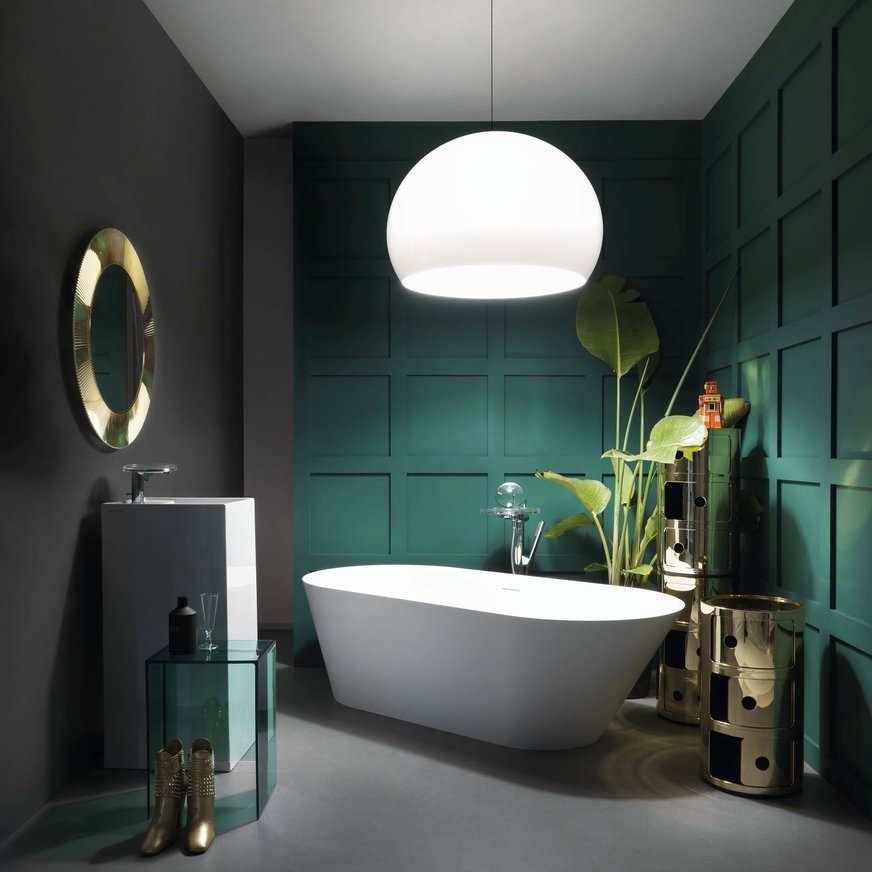 FL/Y is an essentially-styled suspension lamp. The particular transparency of the material and the sheen of the colours create a feeling of soap bubbles that shimmer in the light, iridescently revealing themselves. The shade is not perfectly hemispherical, with the cut-off falling just below the level of the diameter, which allows the light to be concentrated even more efficiently.