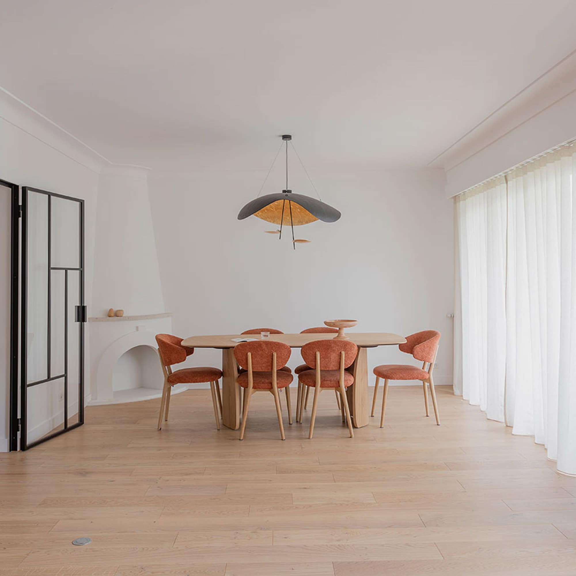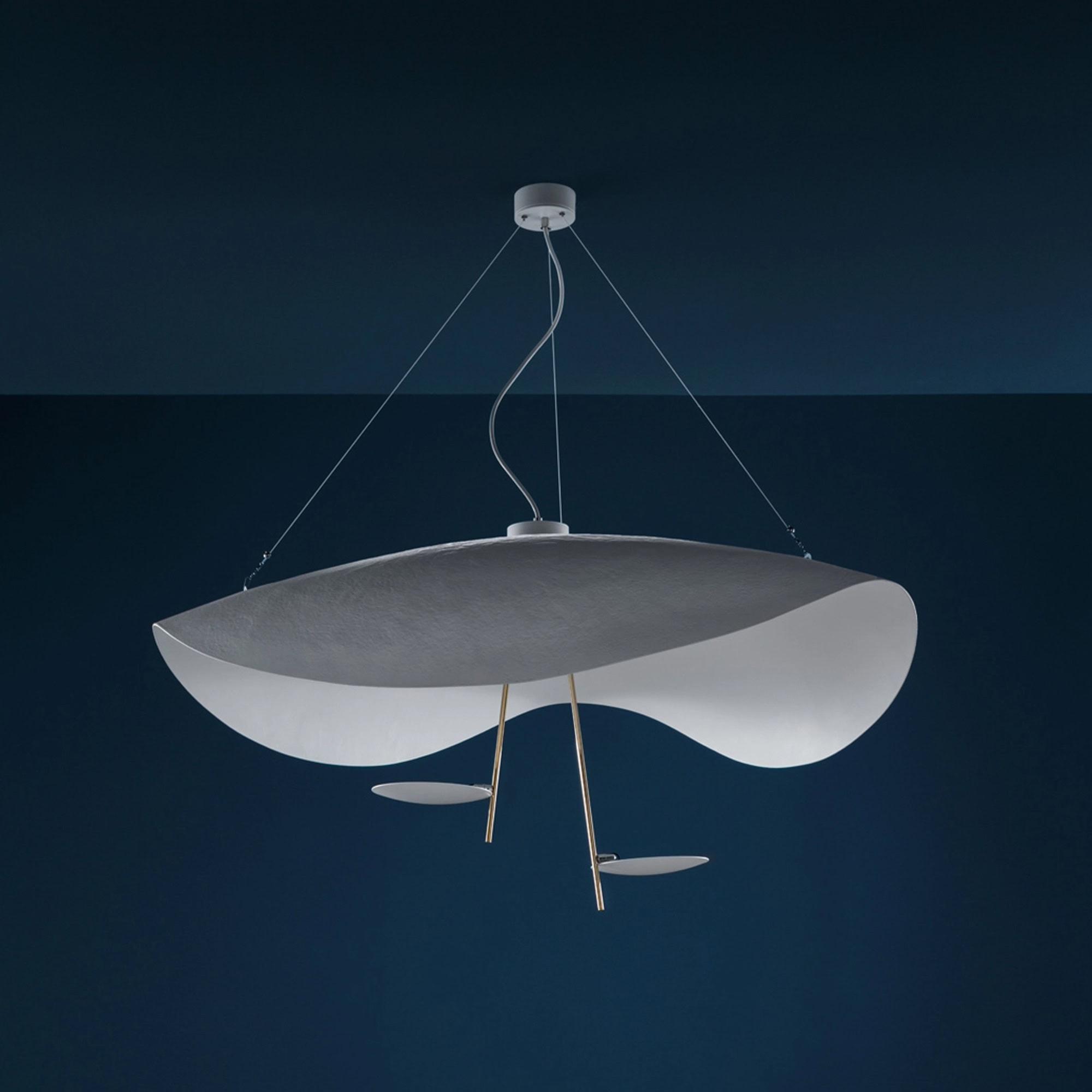 The Lederam Manta S2 Pendant Lamp by Catellani & Smith captures fluid motion in sculptural form, bringing a sense of kinetic grace to any interior. With its wide, sweeping fiberglass shade and thin aluminum discs, the design evokes the organic elegance of a manta ray in flight. Soft curves and suspended elements house an ultra-flat LED module, diffusing warm ambient light through its minimal silhouette. Perfectly suited for modern spaces, this lamp blurs the line between lighting and art installation.