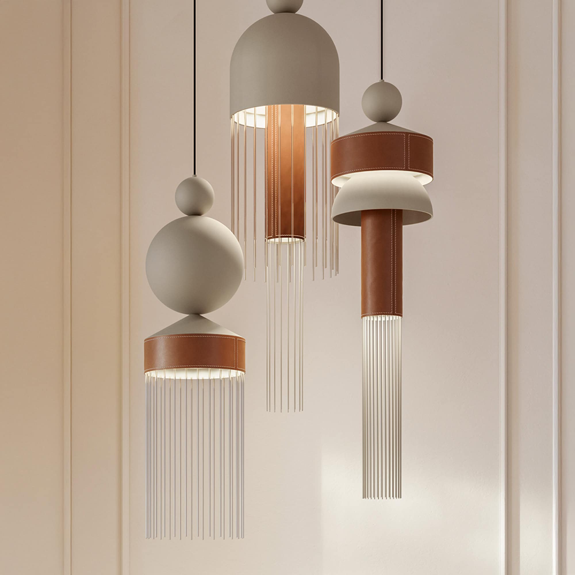 The Nappe XL Series is a striking embodiment of elegance and functionality, designed to enhance contemporary interiors with its sophisticated aesthetic. Each model—Nappe Xl1, Xl2, and Xl3—features a meticulously crafted structure of painted metal with intricate glass rods, highlighted by the option of luxurious leather inserts. This series offers versatile LED lighting options with uplight and downlight capabilities, delivering a warm 3000K glow. Equipped with advanced dimming controls including 1-10V, PUSH, and DALI, each fixture allows for precise ambiance customization, making them ideal for both residential and commercial spaces.