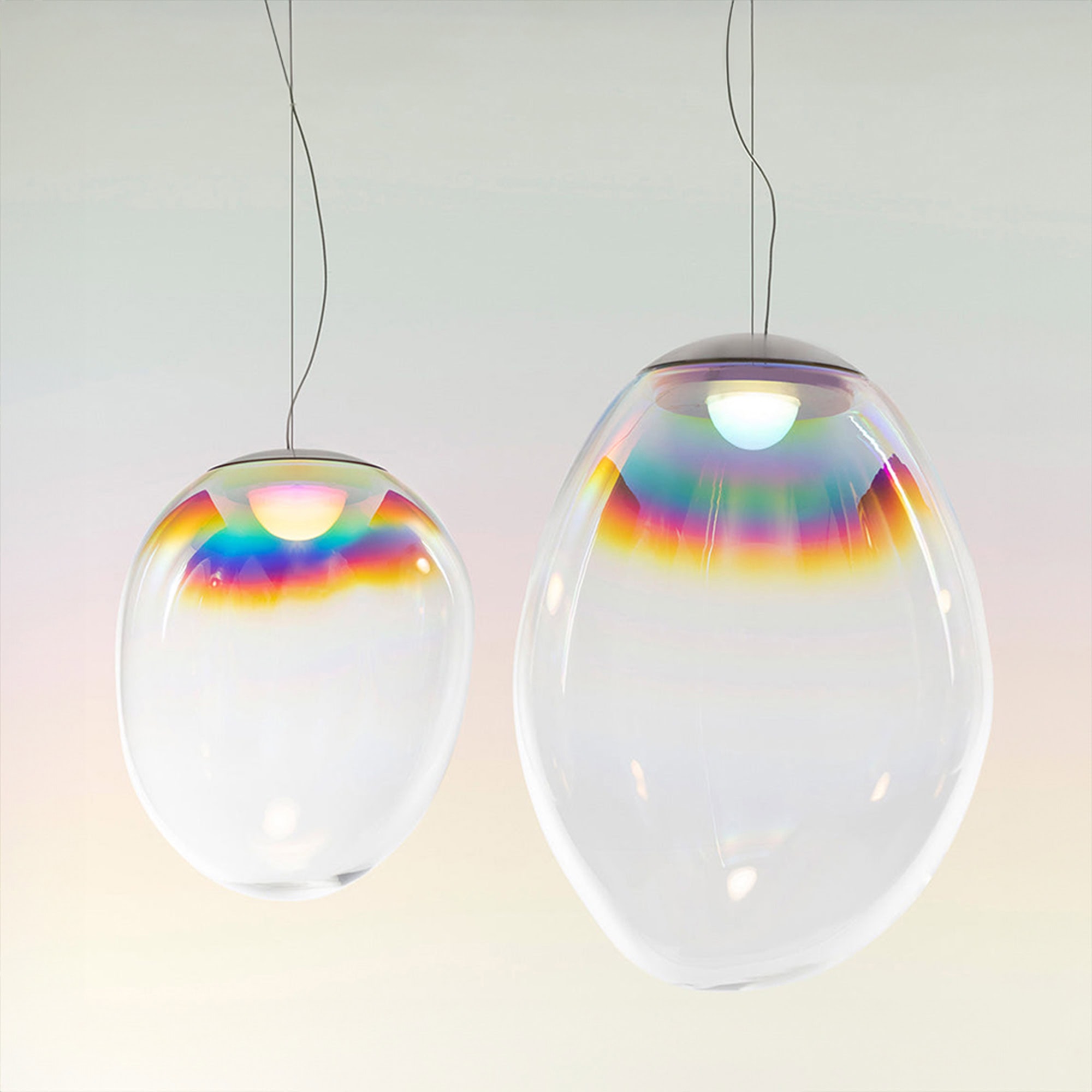 Suspended like a celestial body, the Stellar Nebula transforms ambient light into a soft, atmospheric glow that animates its organic contours. Its fluid shape and iridescent surface reflect the delicate tension between natural imperfection and precise design. Ideal for residential and commercial interiors alike, this suspension light captures the essence of contemporary lighting—where technology, storytelling, and craftsmanship align to create an object that is as functional as it is emotionally resonant.