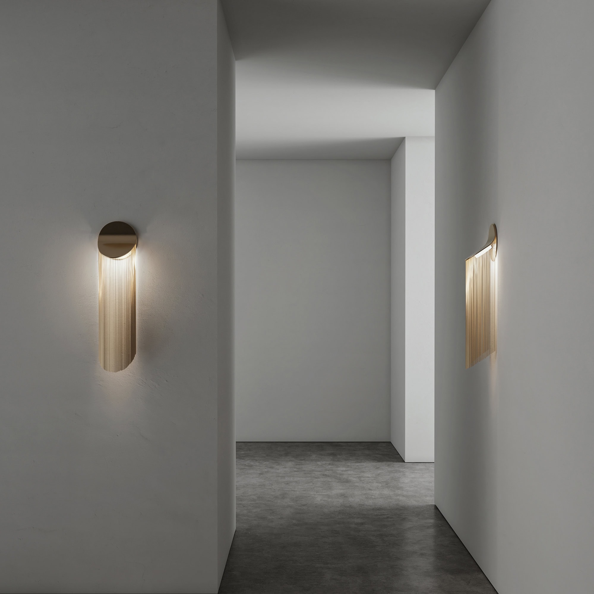 Hand-assembled in Canada using plated steel, aluminum, and premium fringes, the Cé Fringe Wall Light brings artistic refinement to bedrooms, lounges, boutique hotels, and curated residential spaces. Its warm 3000K LED source filters gently through the vertical fringe, producing a softened, ambient glow. Available in three sizes—Petite Short, Petite Long, and Wall—the design maintains d’Armes’ minimalist aesthetic while adding a tactile, fluid presence to the wall.