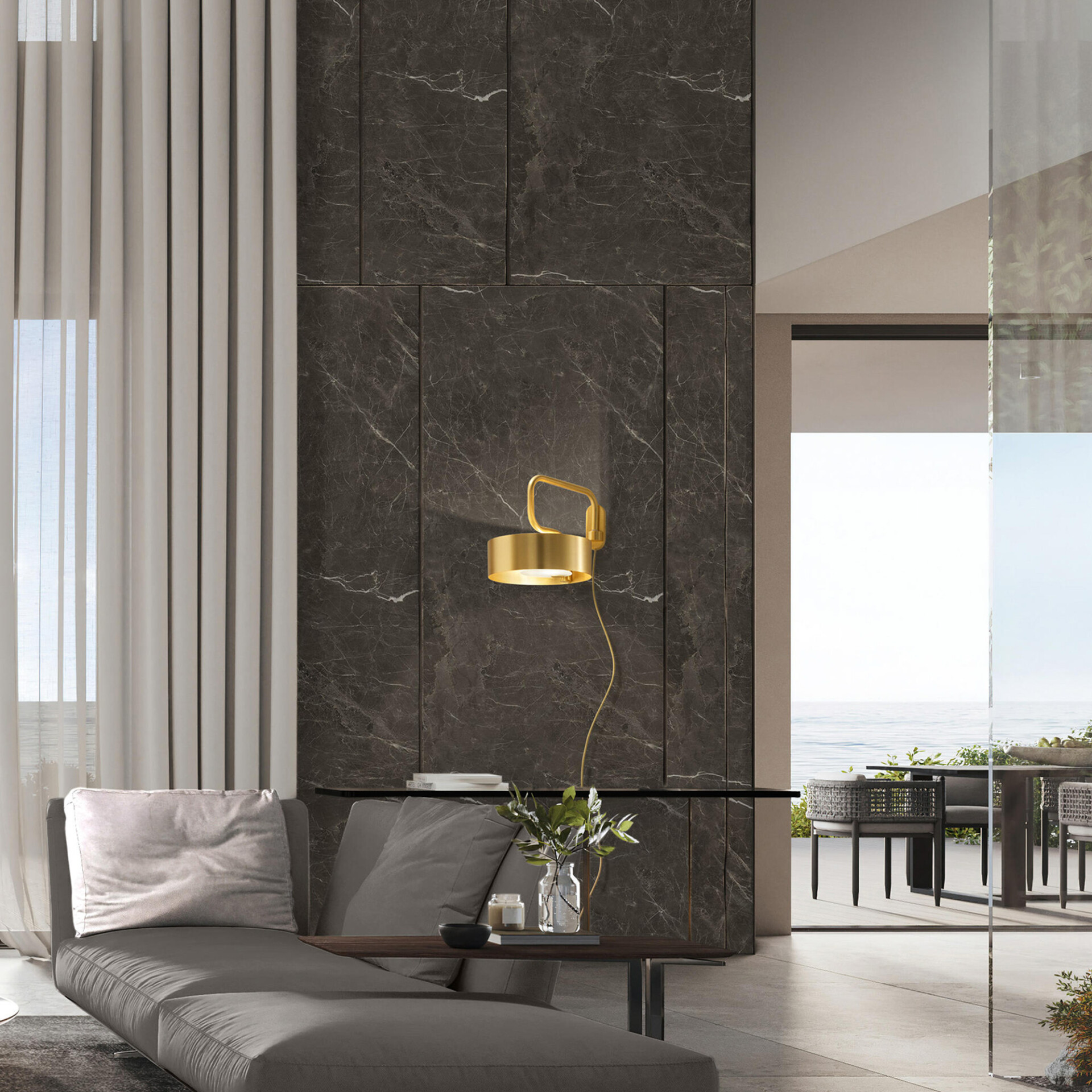 The Luppiter Orb Wall Sconce is a masterpiece of modern design, combining sleek functionality with artistic expression. Featuring a robust metal structure, this sconce elegantly integrates a galvanized metal sphere within its frame, offering both direct and ambient LED lighting. The interaction of metal and light creates a striking visual effect, enhancing the aesthetic of any room. Its versatile dimming capability, via TRIAC, allows you to tailor the illumination to your desired ambiance, making it a perfect choice for both residential and commercial settings.