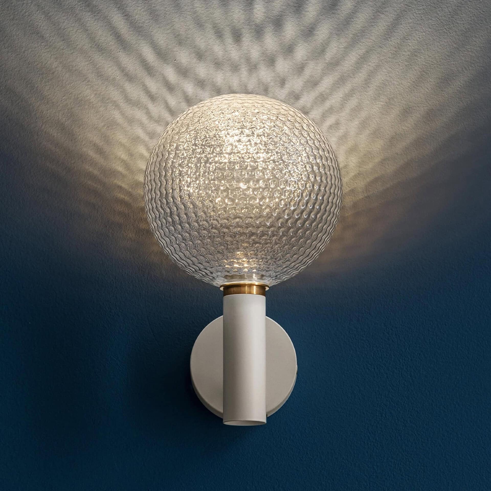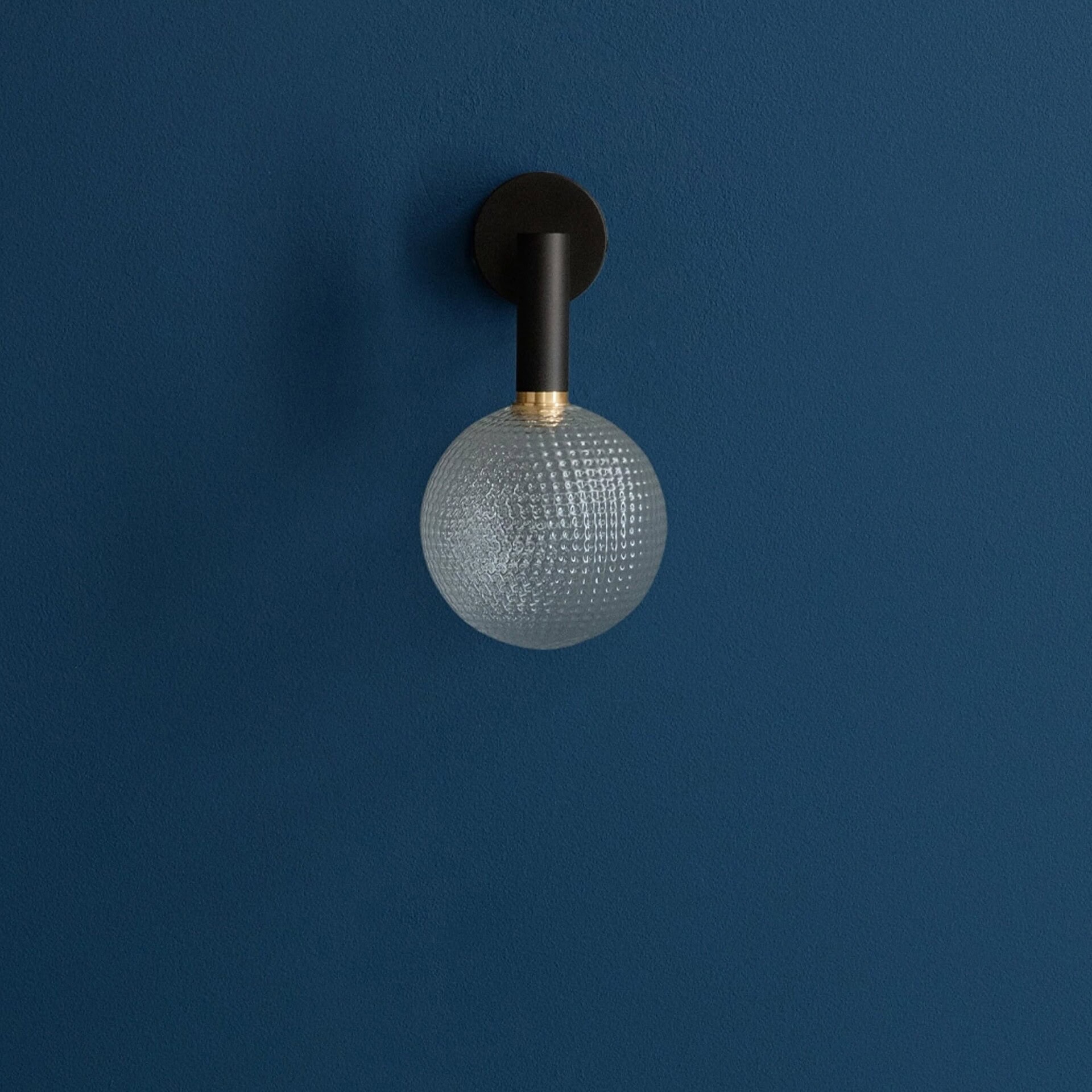The Par 18 Wall Lamp is a refined study in contrast and materiality, combining organic glass forms with clean, modern structure. An irregularly shaped transparent glass sphere is suspended from a sleek metal frame, with brass accents providing a warm counterpoint to the lamp’s graphic clarity. Both sculptural and understated, this wall fixture is ideal for interiors that embrace thoughtful detail and ambient artistry.