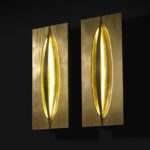 The high-end designer finish lends a contemporary feel to this earth centered collection. Simplicity and detail are key for these sconces. The vertical blade and curved glass allow for excellent light distribution, while the burnished brass and gold leaf finish give it a distinct orientation. LED lit, these sconces are not only beautiful but energy efficient.