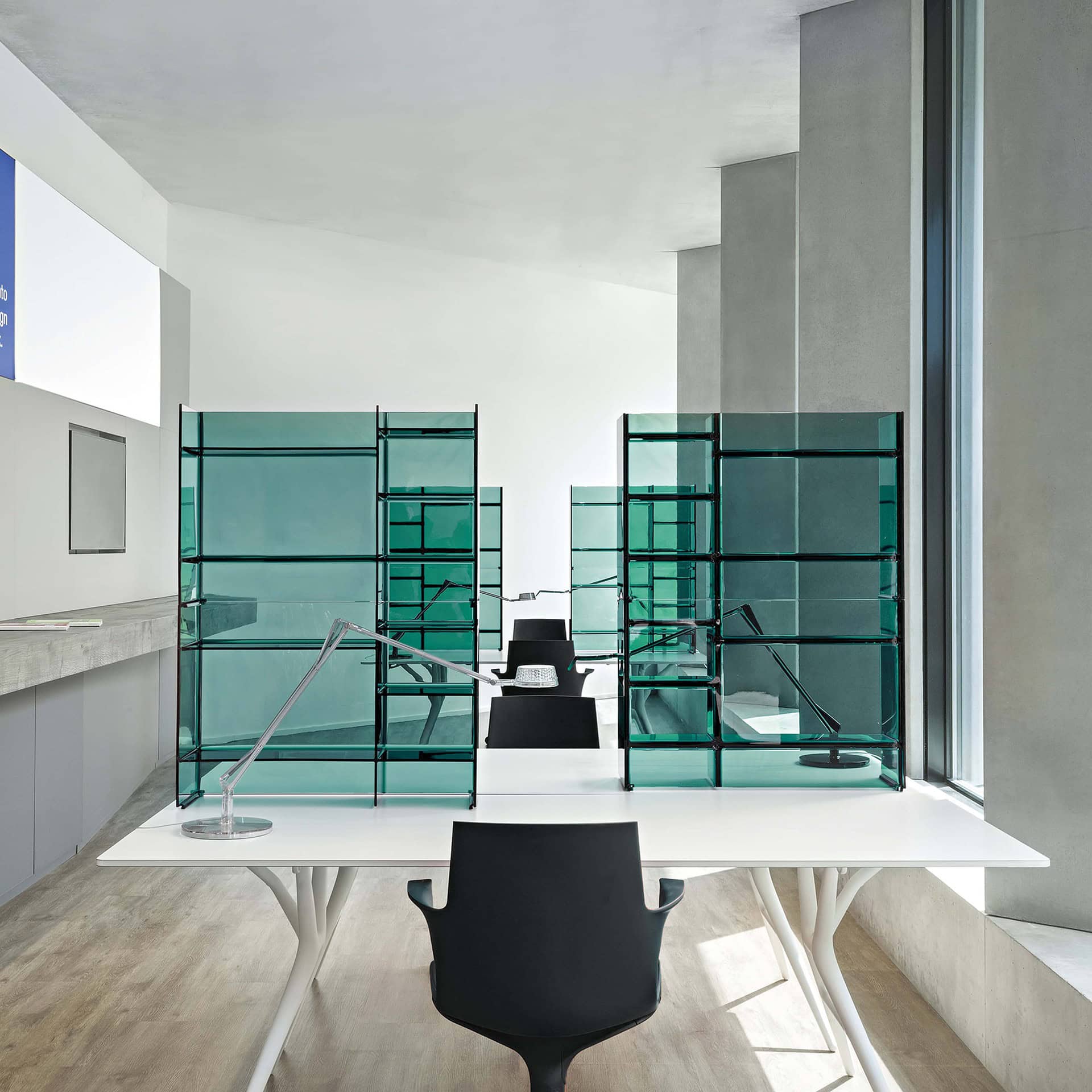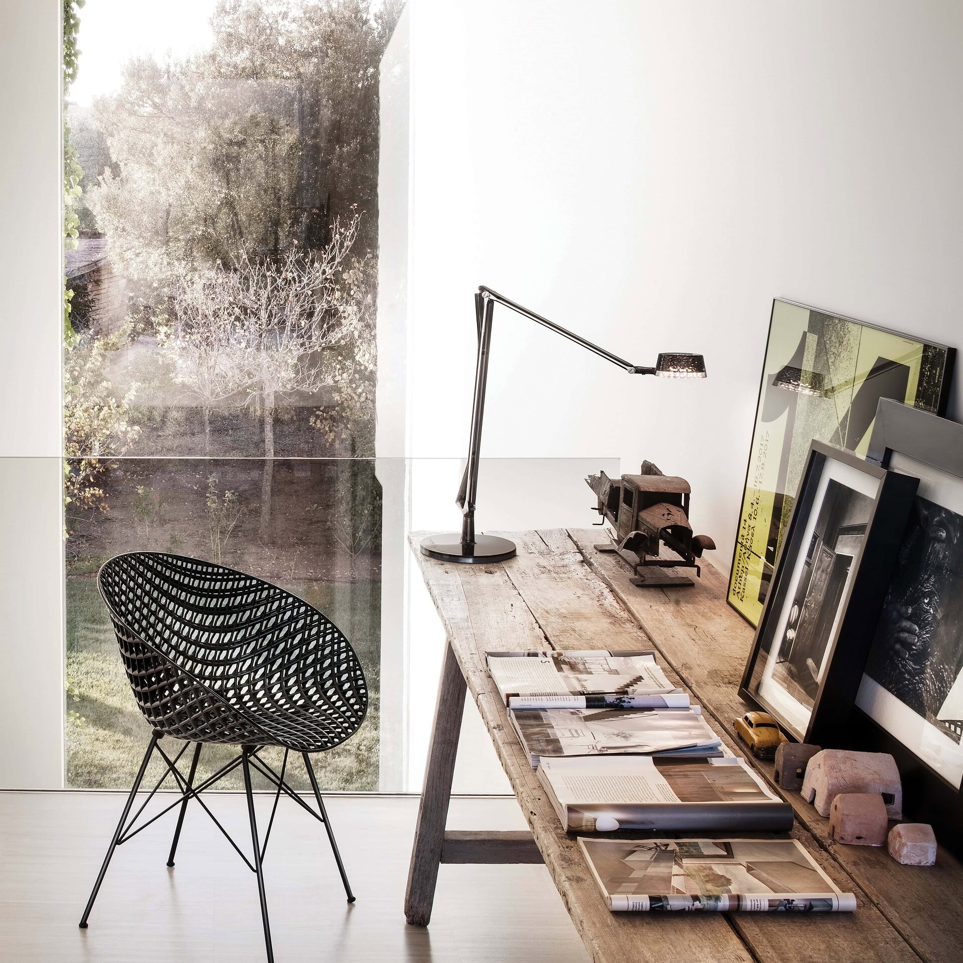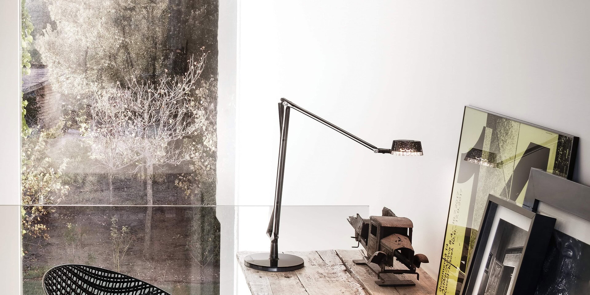 In LED task lamps, the distinctive element is the diffuser. With its flat head and adjustable diffuser, Aledin Tec provides a direct light source that can be adjusted by moving the diffuser. Two aluminium rods endowed with a conductivity function are used to support the two polycarbonate arms that form the structure of both models, which are articulating arms in polycarbonate. In class 3, this lighting fixture has a high-performance luminosity in the area of 600 lm and enables considerable energy savings thanks to its latest generation 5.6 W LED lamp bulbs.