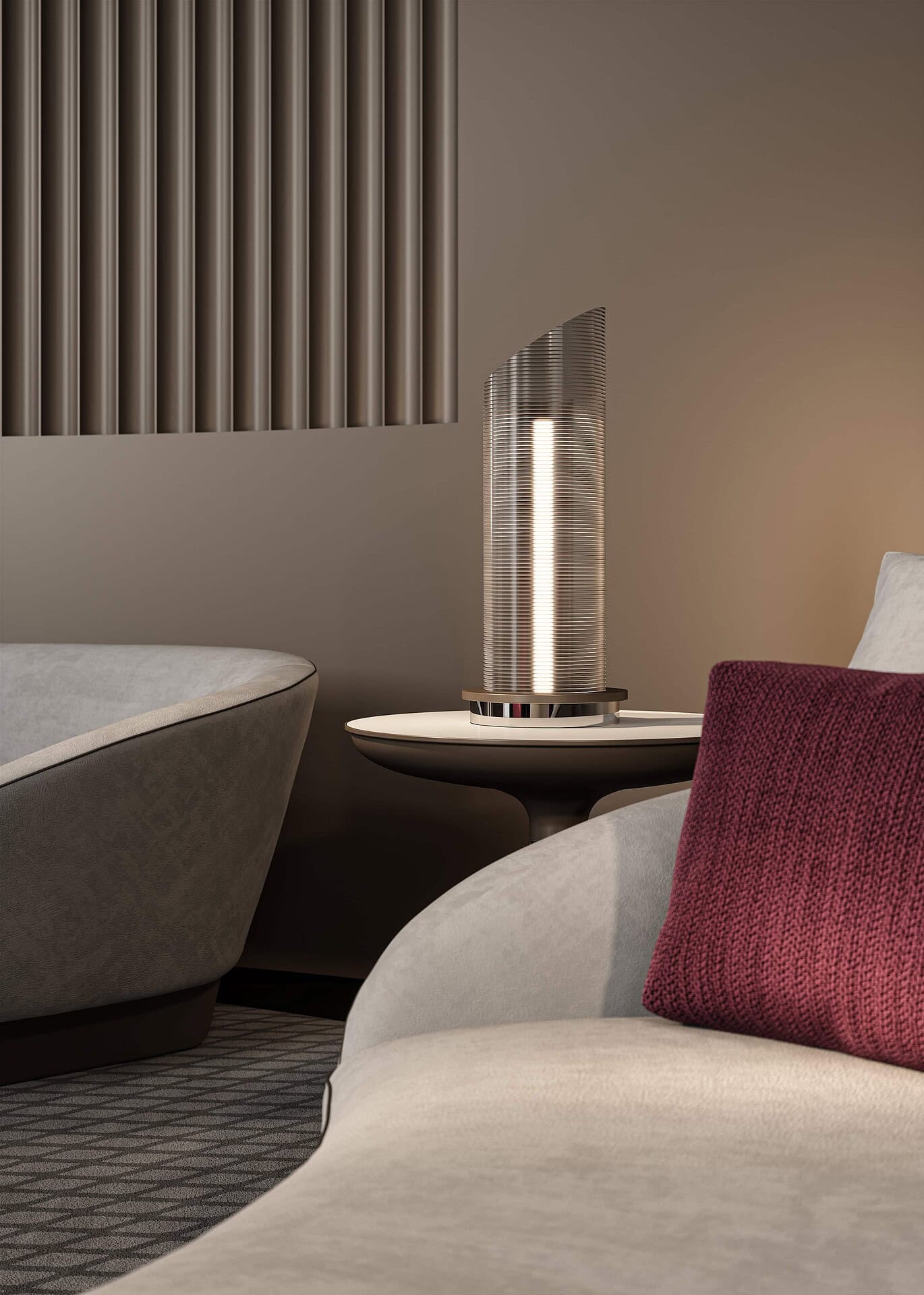 This minimal design maximizes lighting while reflecting its glow. The thick glass cylinder encloses a center tube in a brass or bronze finish that conceals the cord. Topped with a linen shade, the Aria Lamp is an elegant choice for a console or dresser.