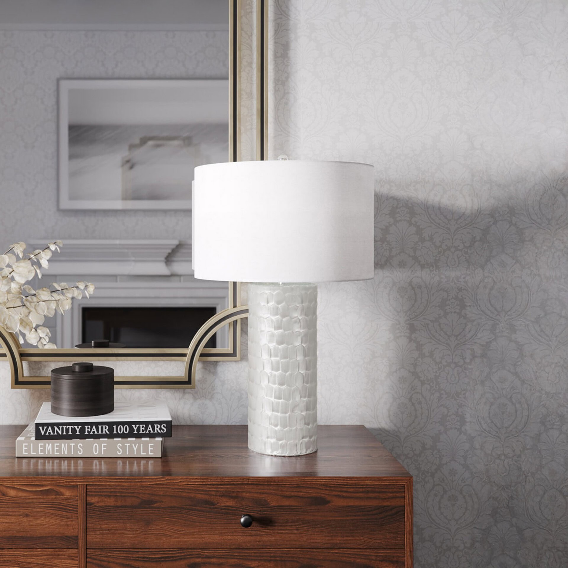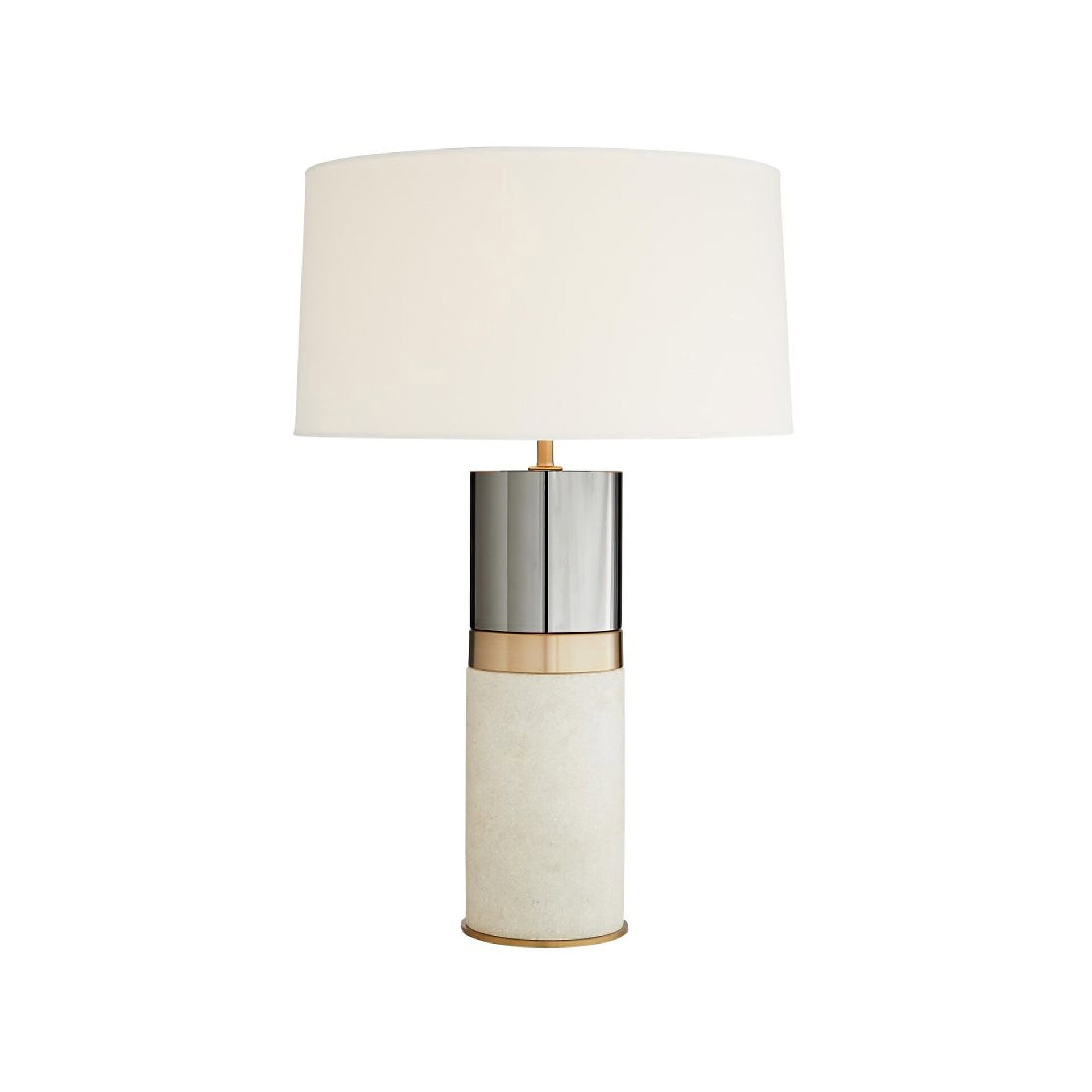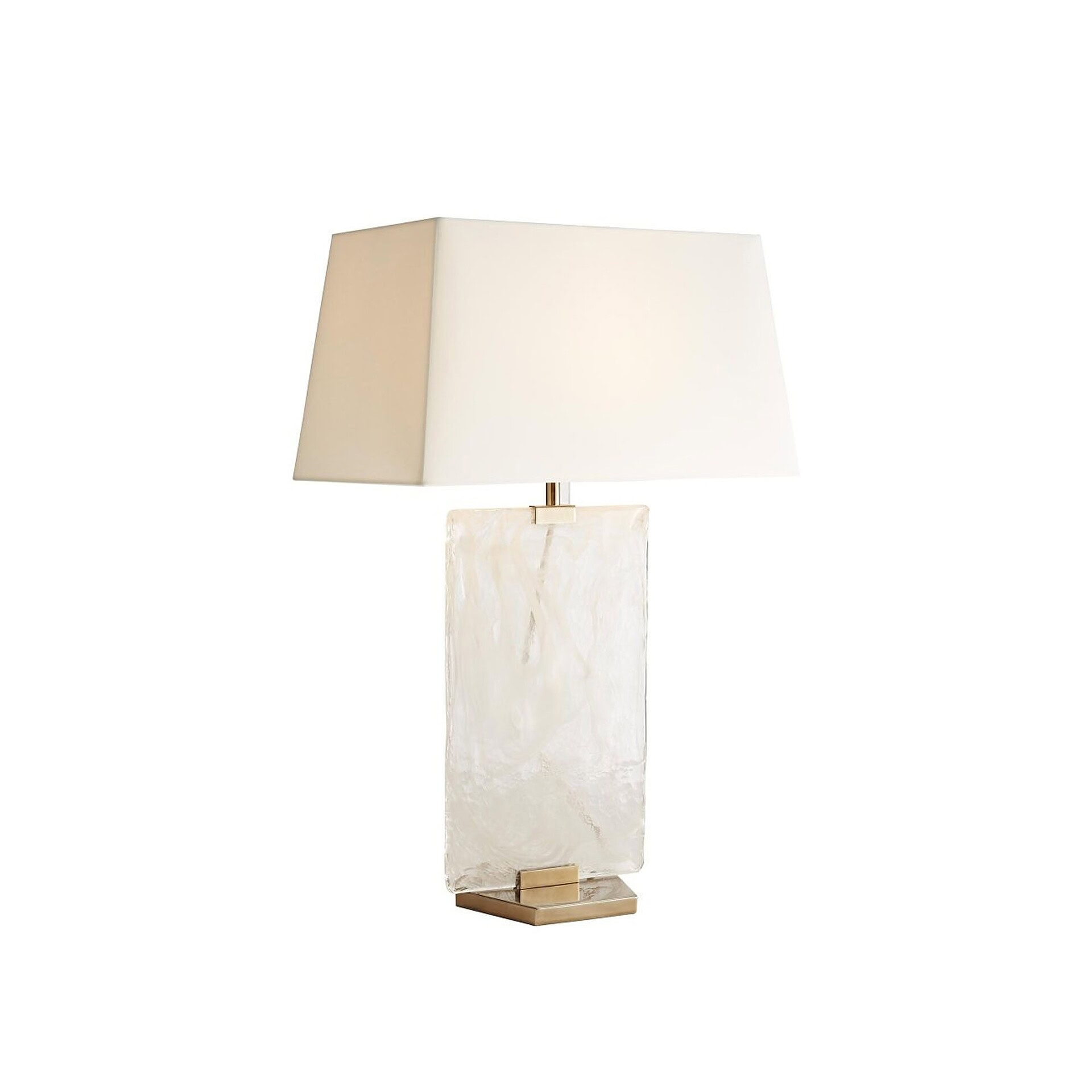 Hand blown glass; cotton and microfiber shade.