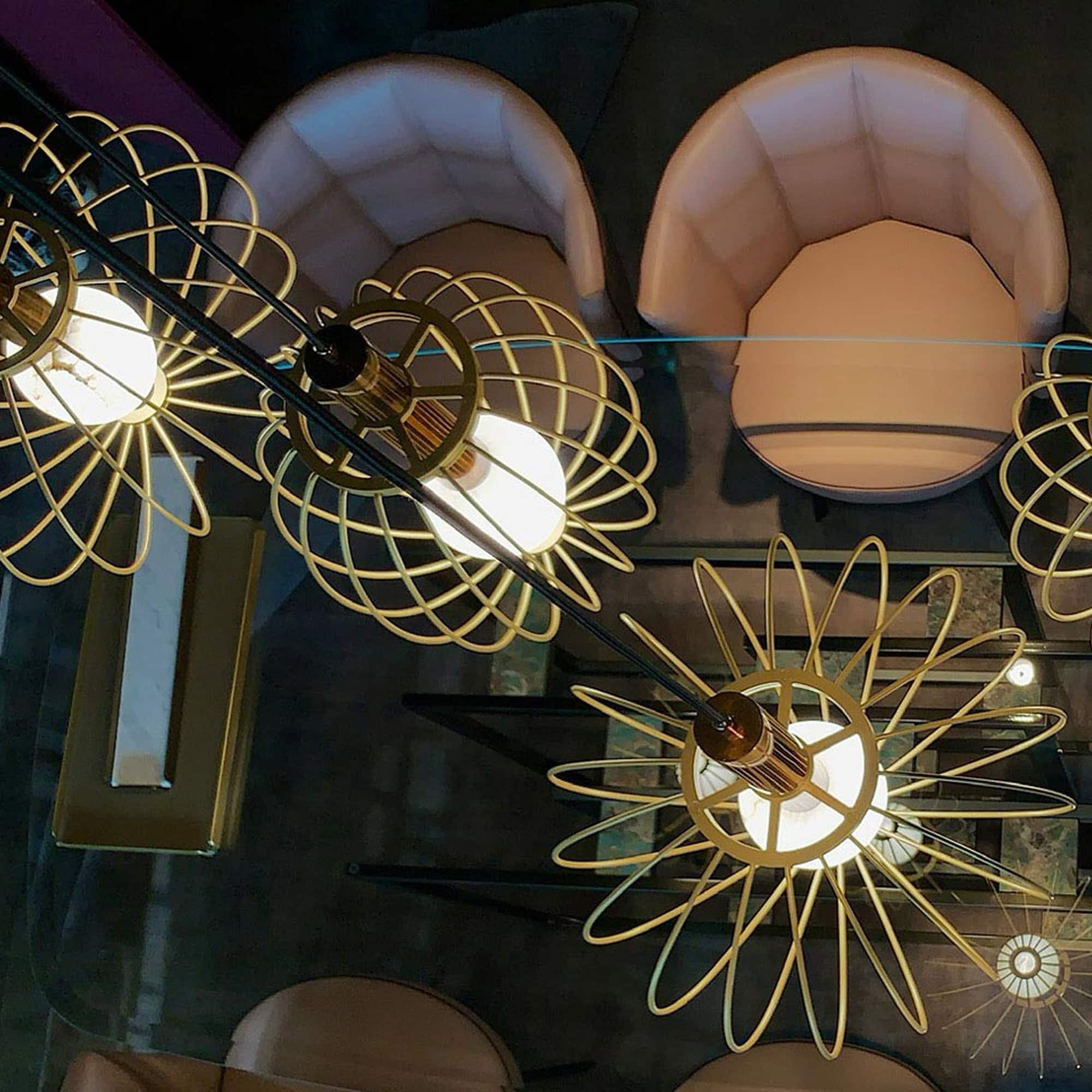The Lira Pendant Light embodies Borzalino’s refined craftsmanship and sculptural sensibility. Its open, basket-like silhouette is formed by two available diameters—Ø28 and Ø40—and is suspended from a sleek metal cable with an adjustable drop from 50 cm to 200 cm. Light emanates through a central sphere made of either alabaster or crystal, housed in a burnished brass dome, creating a rich and softly diffused glow. The pendant’s airy structure enhances its lightness while maintaining a strong architectural presence, ideal for dining areas, entries, or grouped installations.