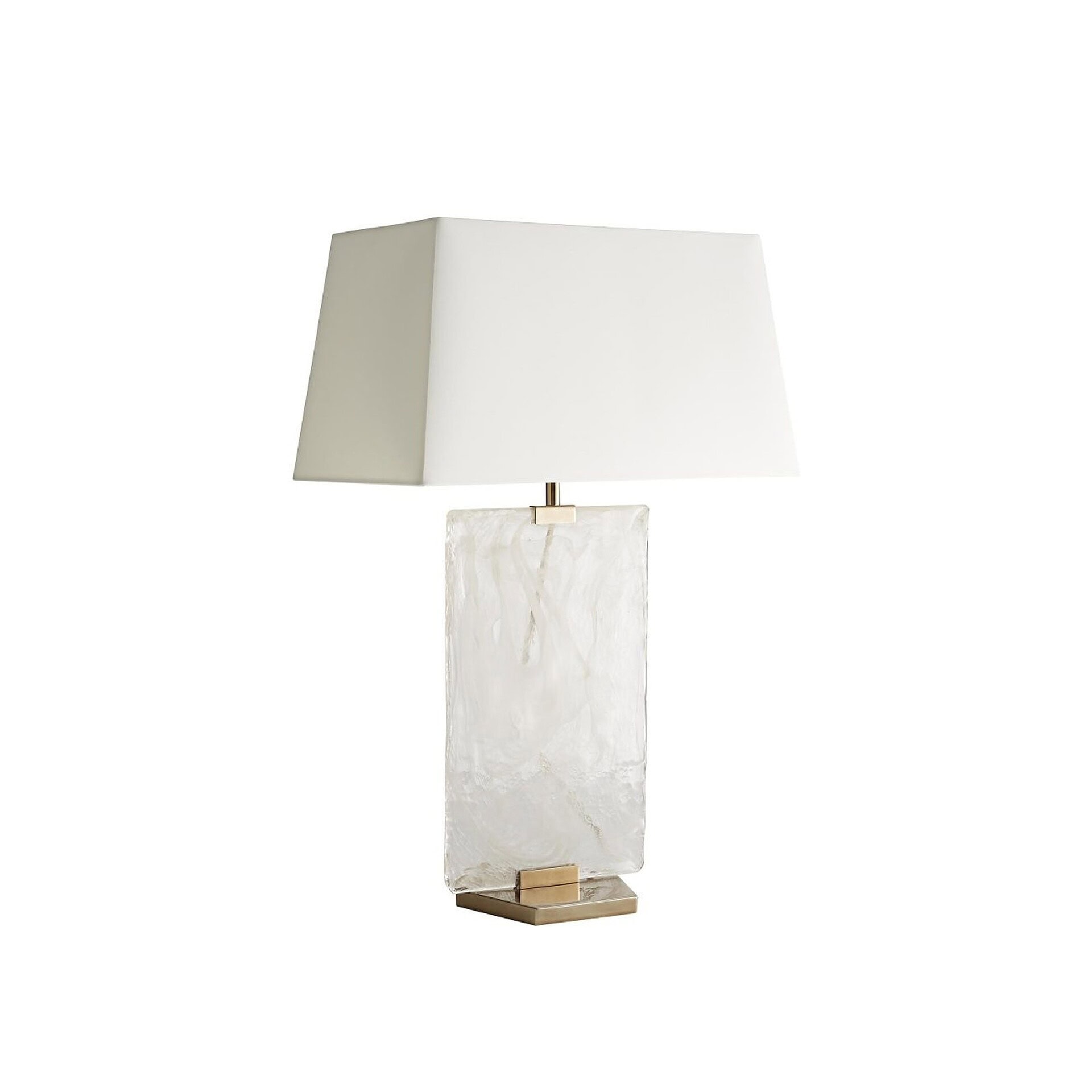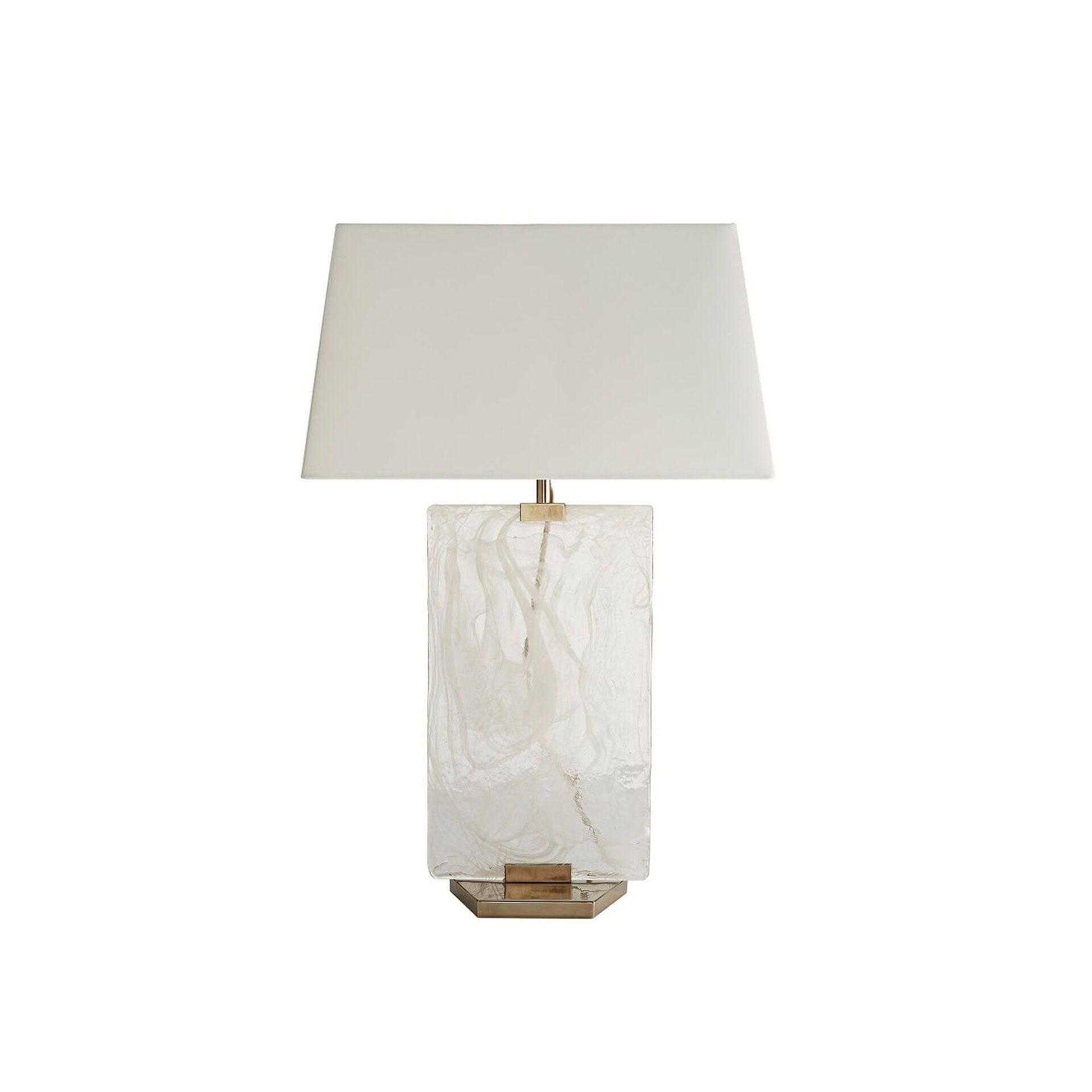 The Maddox Table Lamp is a striking fusion of artistry and craftsmanship, featuring opal-toned swirls that flow through thinly cut glass for an ethereal, one-of-a-kind look. Each glass plate is hand-formed, creating organic edges and a touch of texture, then mounted to a heritage brass–finished stainless steel frame. Because the swirling patterns are also applied by hand, every lamp has its own distinct character, making it as unique as the space it illuminates. A tapered rectangular shade in ivory cotton with a matching ivory lining diffuses light softly, while the heritage-finish cube finial completes the refined composition.
